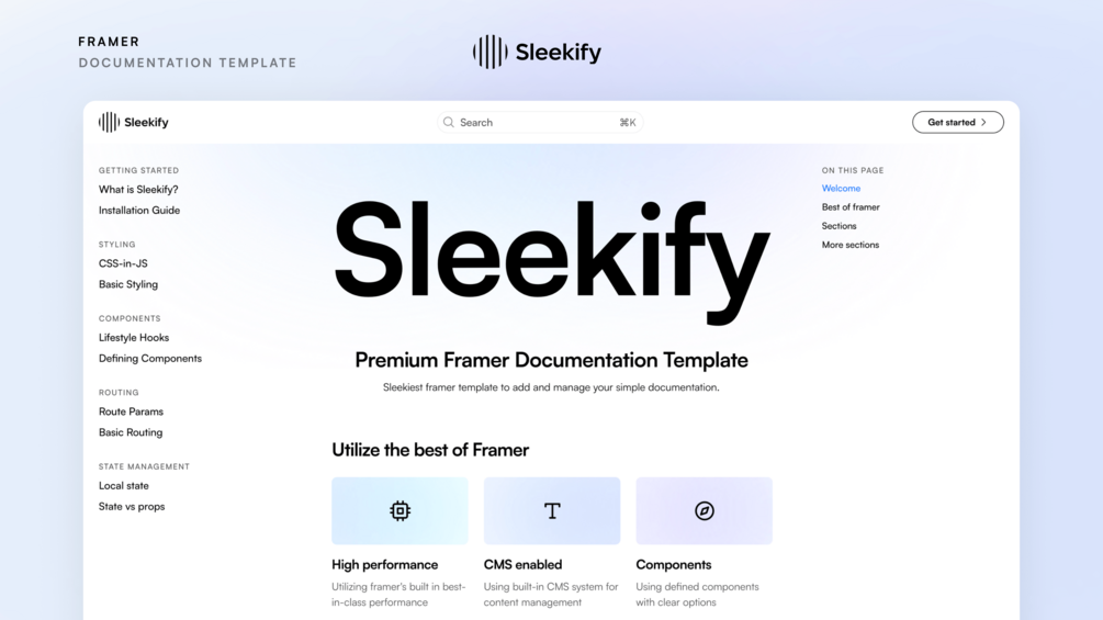 Premium, simple documentation website template built on and with latest capabilities of Framer, designed and built with care about details.